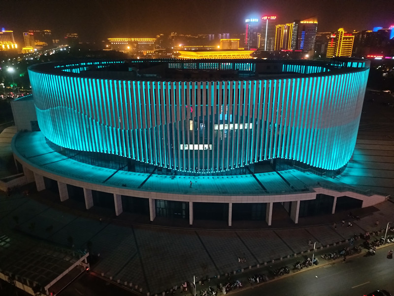 由于建筑本身的特點(diǎn),全部選取RGB投光燈打亮建筑營造夜景氣氛,共計(jì)1230套投光燈,DMX512控制系統(tǒng),實(shí)現(xiàn)整體聯(lián)動(dòng)變化效果,完美的詮釋了建筑本身的美。